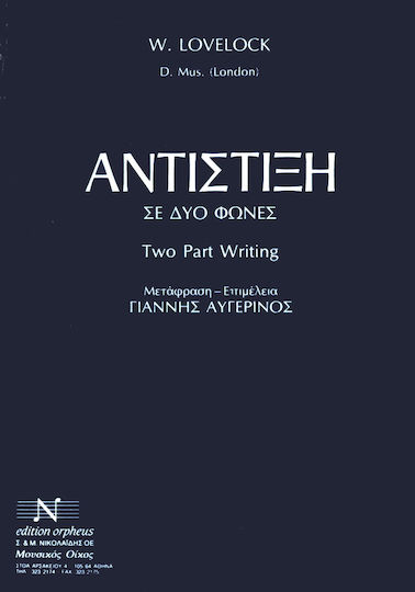 Νικολαΐδης Μ. - Edition Orpheus W. Lovelock - Αντίστιξη σε Δυο φωνές Βιβλίο Θεωρίας για Φωνή
